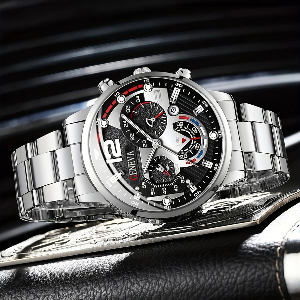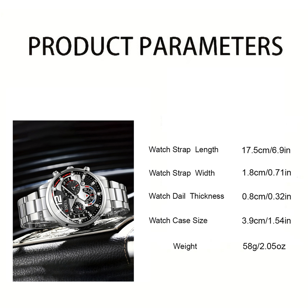 2 Pcs Business Men's Watch Fashion Stainless Steel with Quartz Watch Pointer Calendar Men's Watch Bracelet