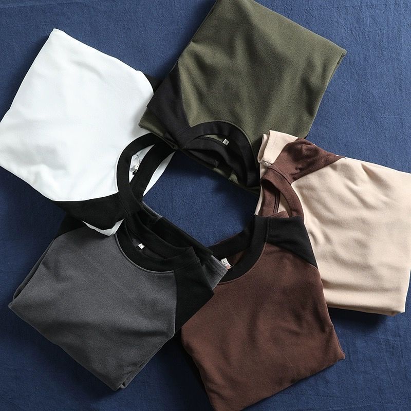 2023 new Double-Sided German Velvet Bottoming Shirt Men Autumn Winter Style Fashionable All-Match Raglan Sleeve Sweatshirt Men Casual Contrast