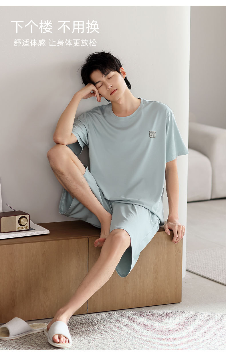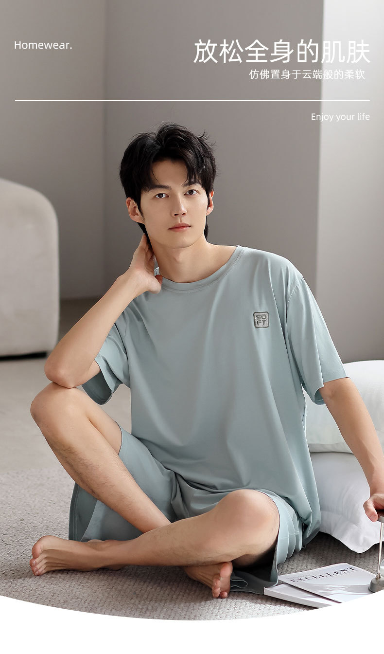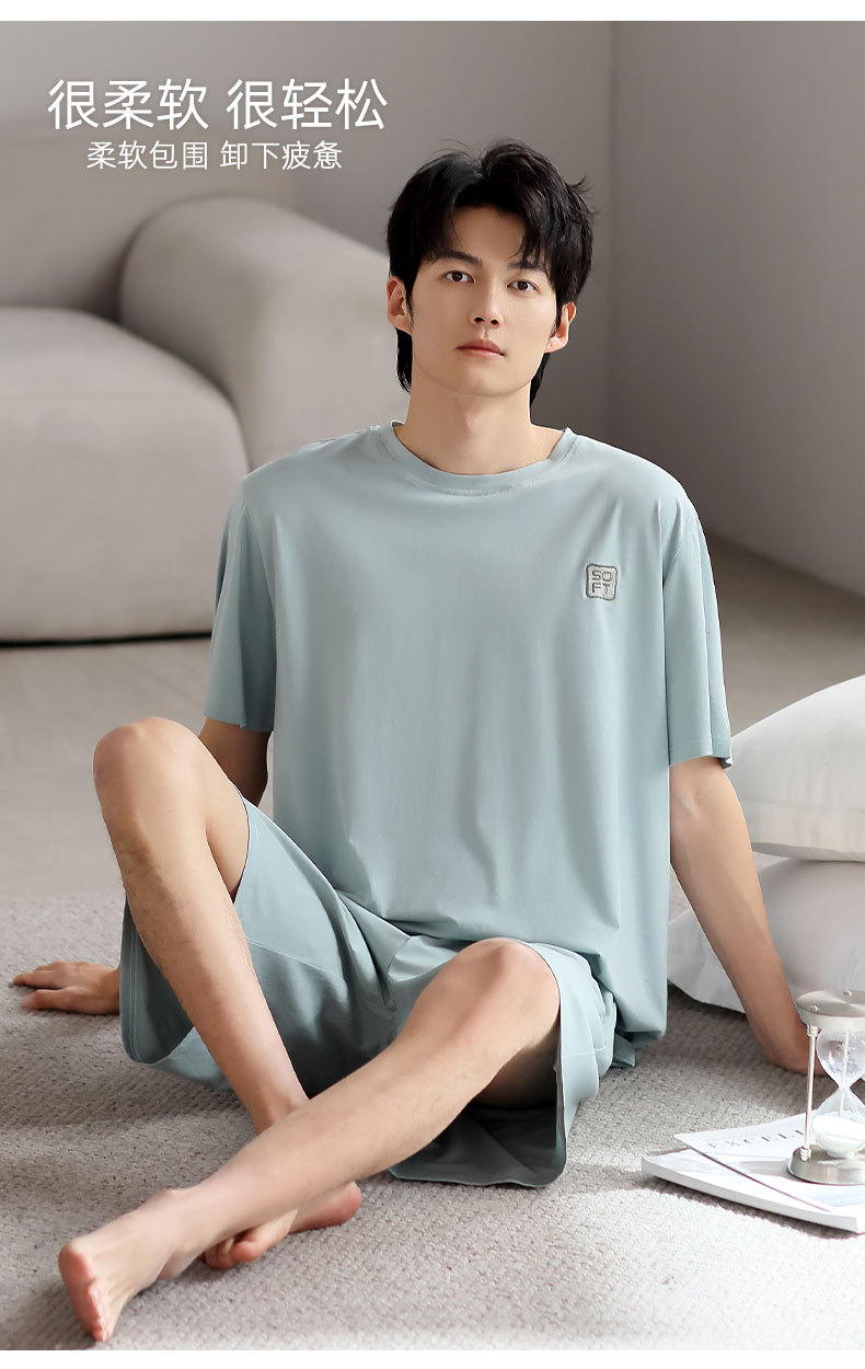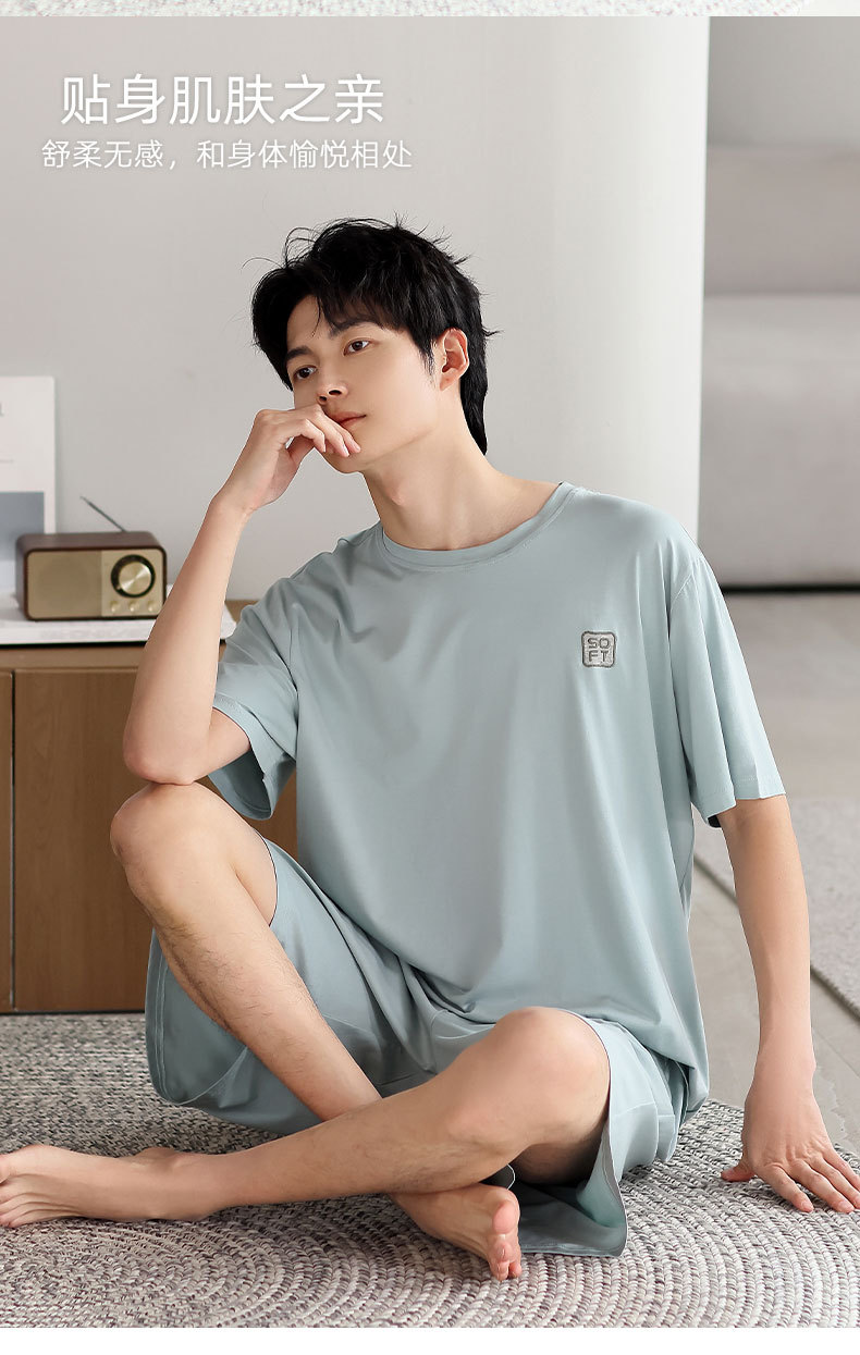 莫代尔睡衣男款夏季2025新款男士冰丝夏天短袖短裤薄款家居服套装