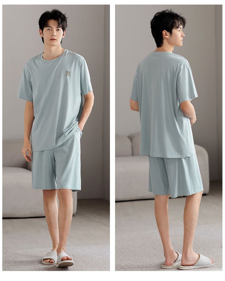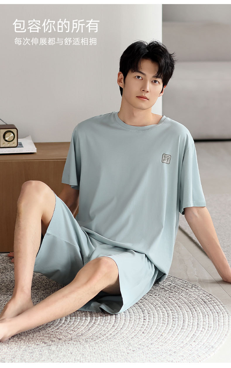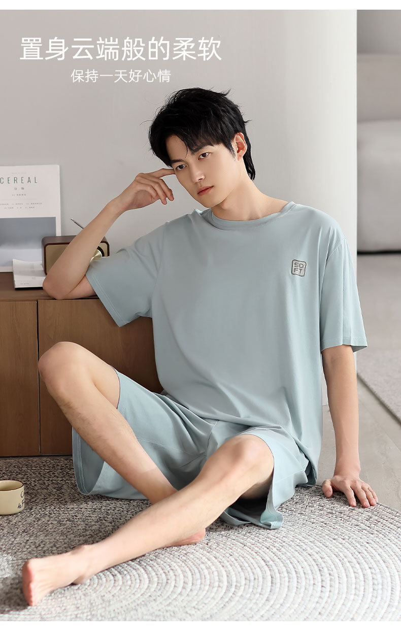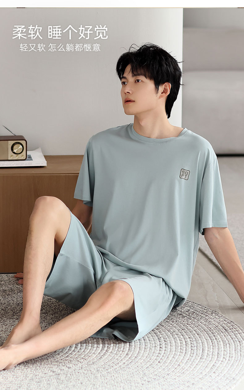 莫代尔睡衣男款夏季2025新款男士冰丝夏天短袖短裤薄款家居服套装