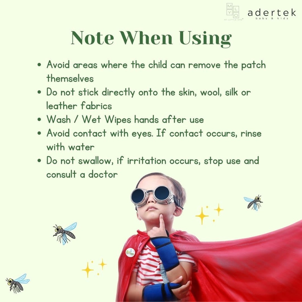 Effectiveness:No more mosquitoe bites Fragrance:Last more than 12 hours Love this MYLO mozzie patch over others. Lasting fragrance that is not too overpowering yet effective. Sticker does not leave a stain on clothings.