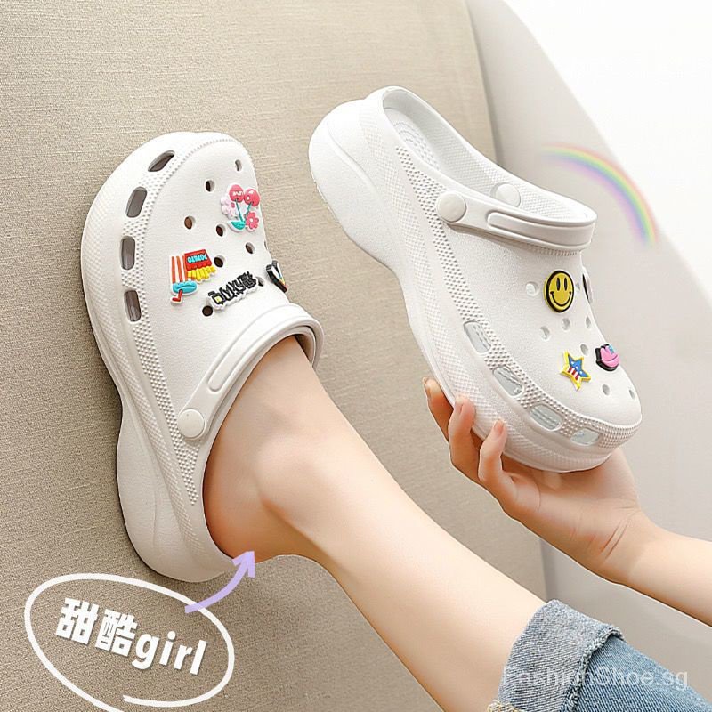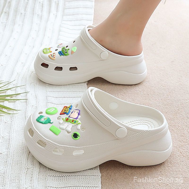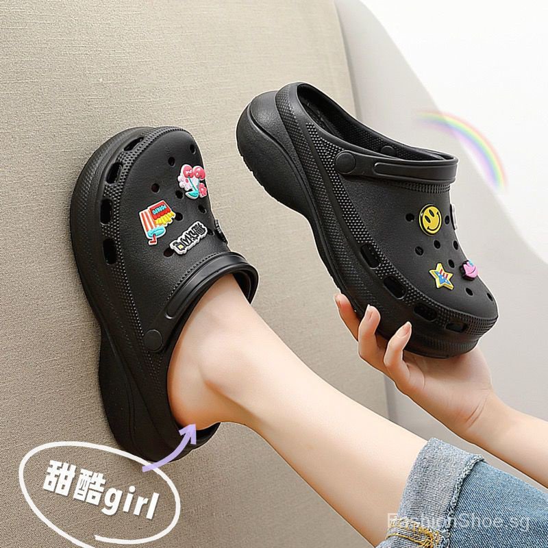 【Fast shipping】36-45 Crocs Jibbitz shoe for Men and Women's Fashion 4cm High Heel sandal Beach for Student Nurse
