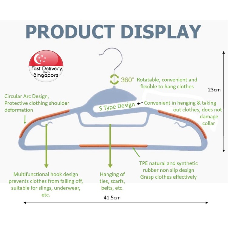 Performance:Ok Suitability:Ok Quality:Ok Nice hangers. Love how the clothes won’t slip down now lol. Bought a lot hangers at one go, but just 1 was spoilt. Still has more than enough so it’s OK:)
