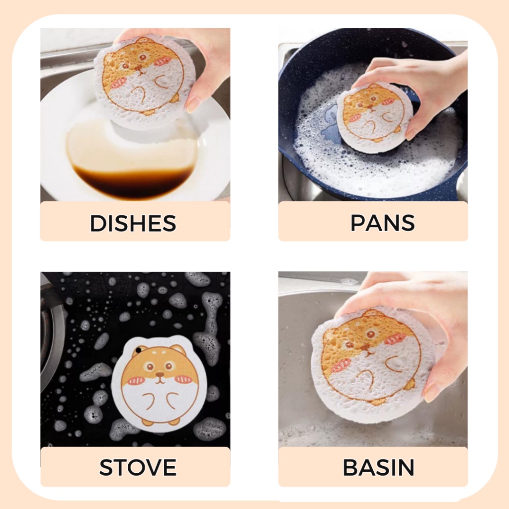 mixshop Magic Wood Pulp Dishwashing Cleaning Sponge [FREE HANGING STRING] [SG READY STOCK]