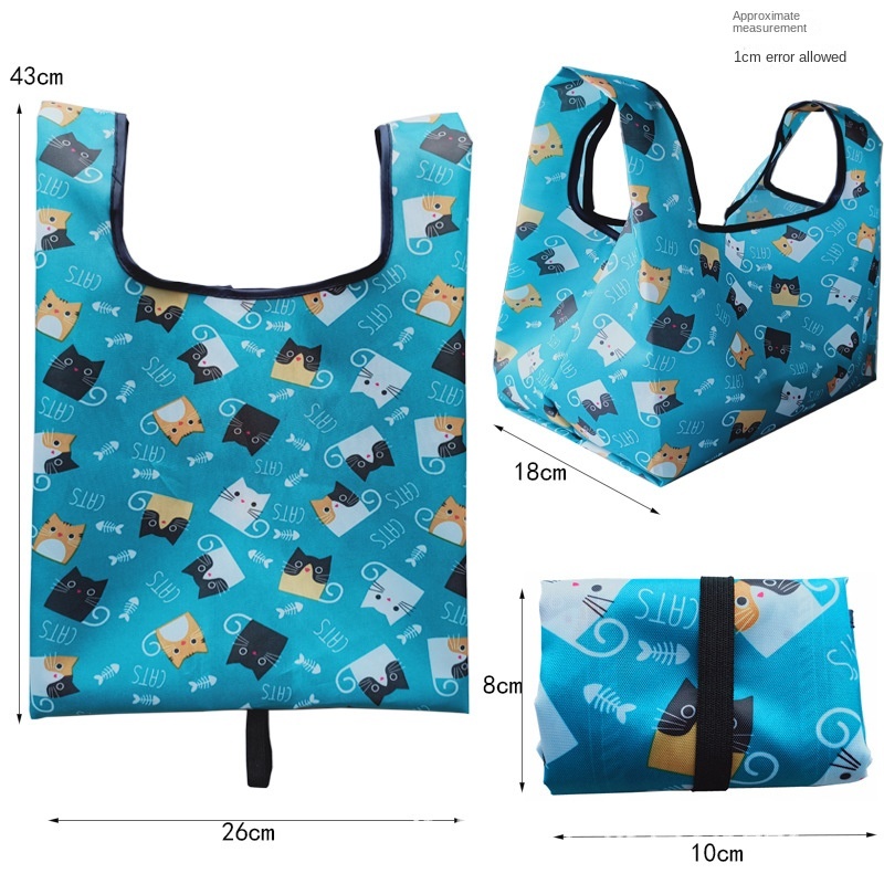 Colour:Nice and Cute Material Quality:Good Cute cats design recycle bag. The size is small-medium, good to put small misc items. Overall, happy with it. :)