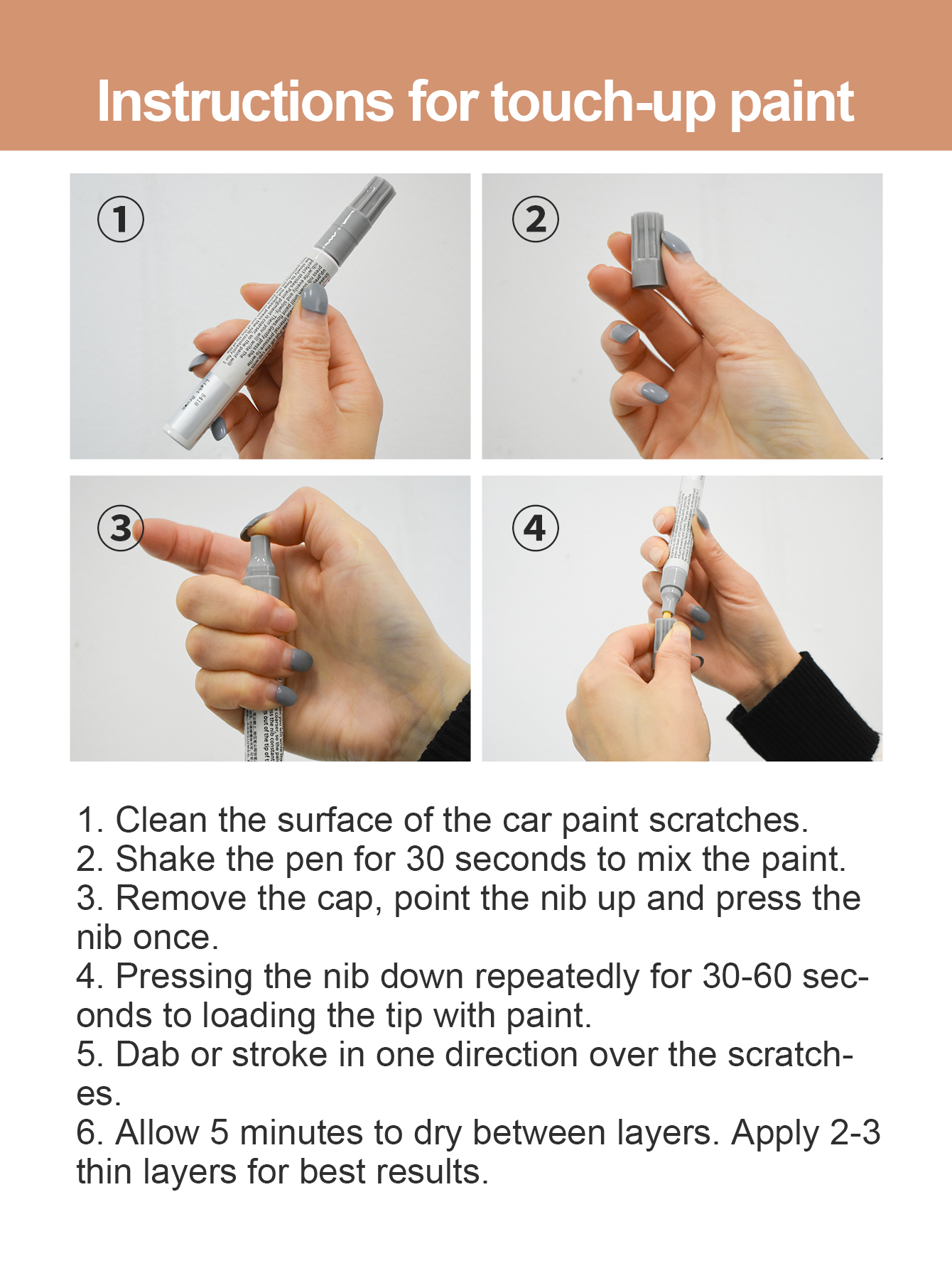 Performance:not sure Suitability:Not sure Quality:Not Sure Have bought this for my car rims have yet to try. Hopefully it works at covering chips and scratches
