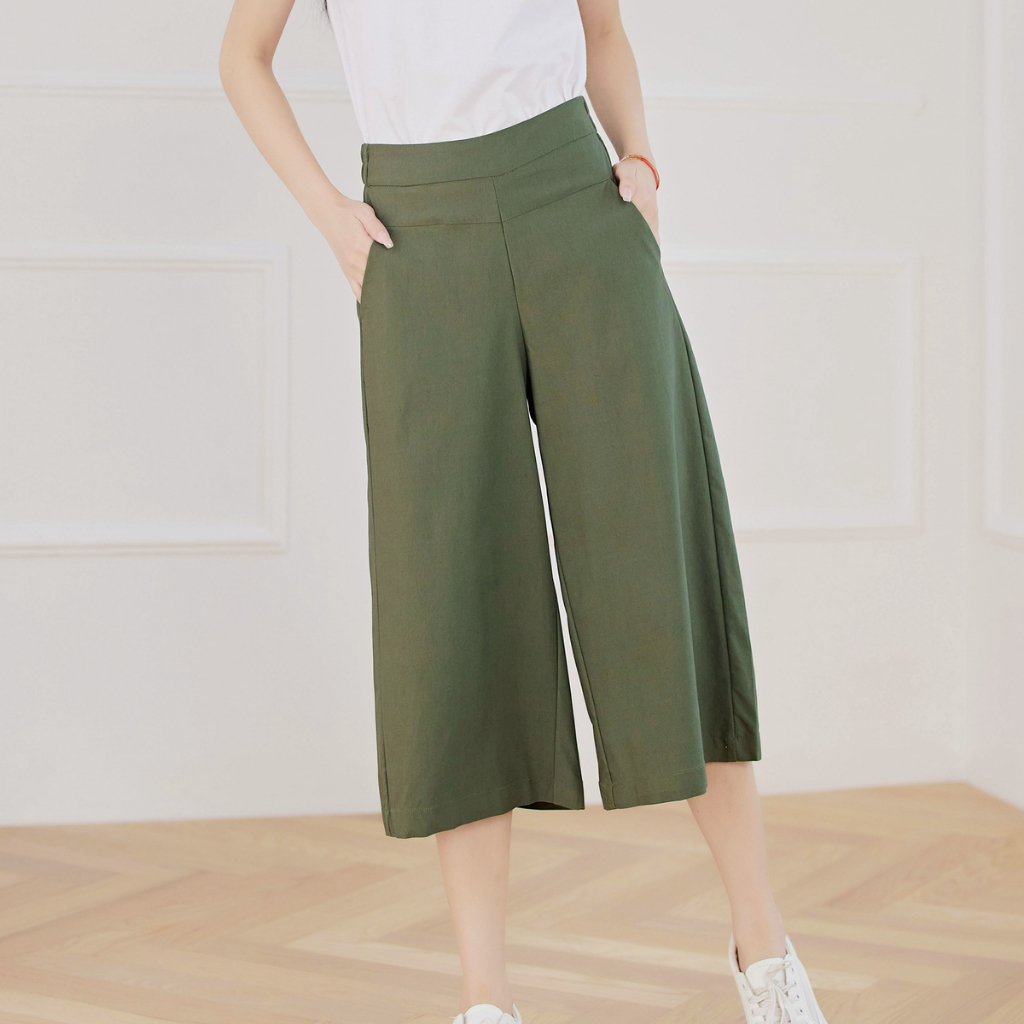 Silverworld 10123 Ladies wide leg pants High waist women casual pants culottes 3/4 length
